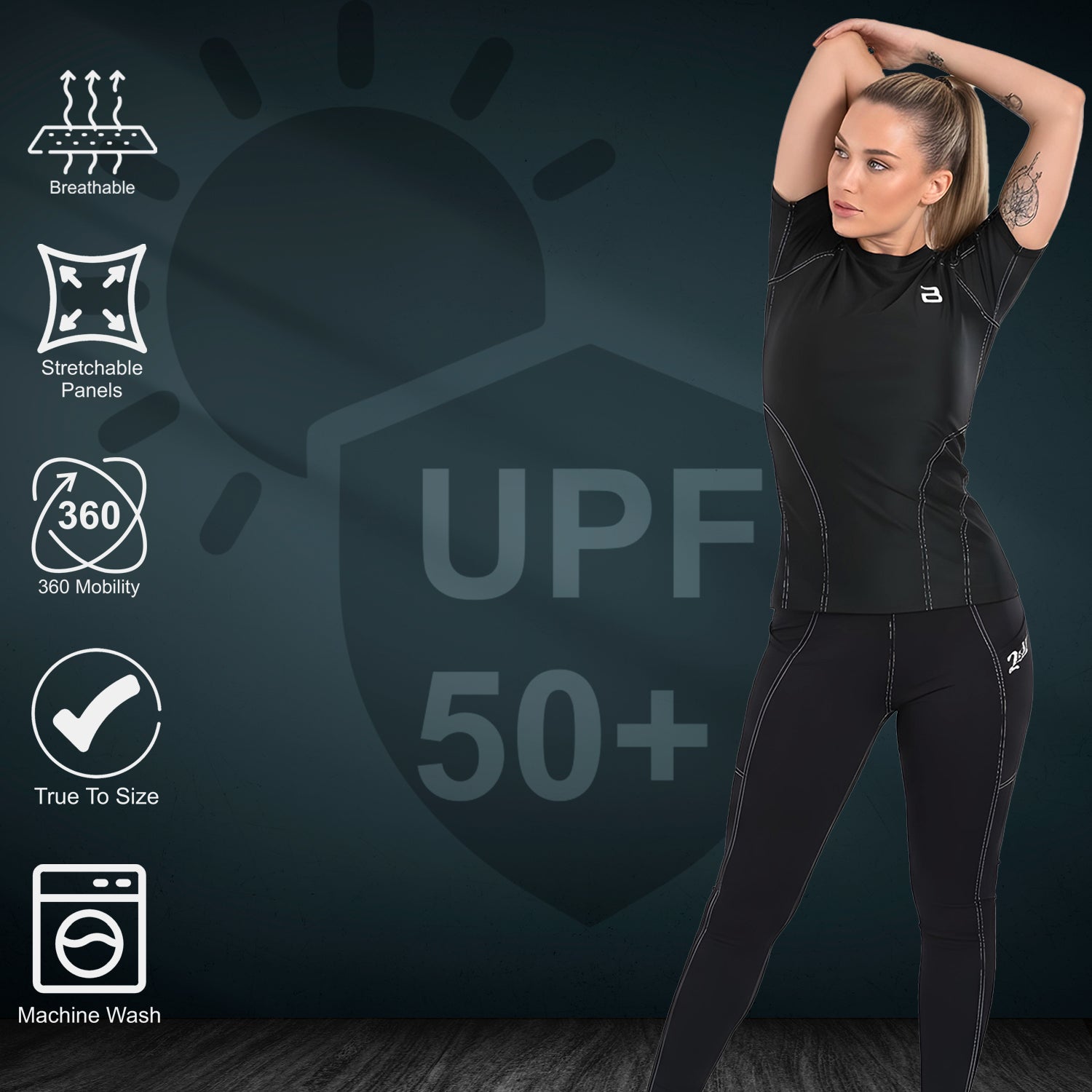 2Bold Black Women’s Rash Guard –Long Sleeve Compression Shirt for MMA, BJJ, Yoga, Surf, Running & Gym Training Women Half sleeve Rash guard