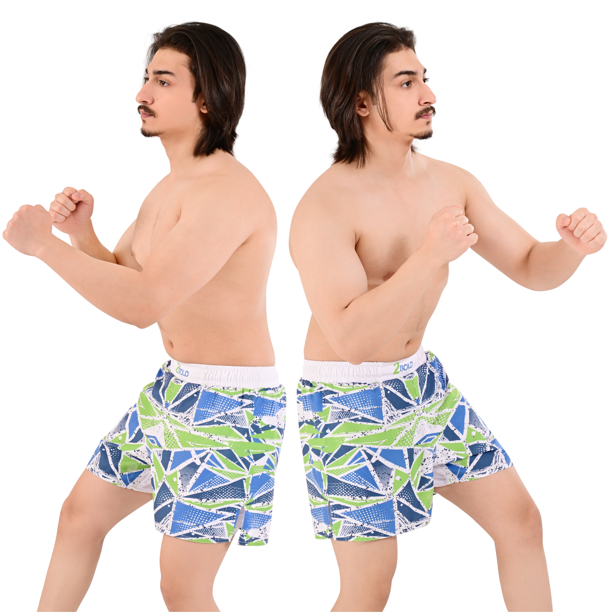 Tailored for athletes, the 2BOLD Men’s Green White 2-in-1 Hybrid Training Shorts combine a supportive compression liner with lightweight outer shorts for better mobility. Designed to keep essentials secure, the shorts feature discreet side phone pockets, while breathable, sweat-wicking fabric ensures comfort during intense MMA, BJJ, Muay Thai, gym workouts, running, and cross-training sessions.