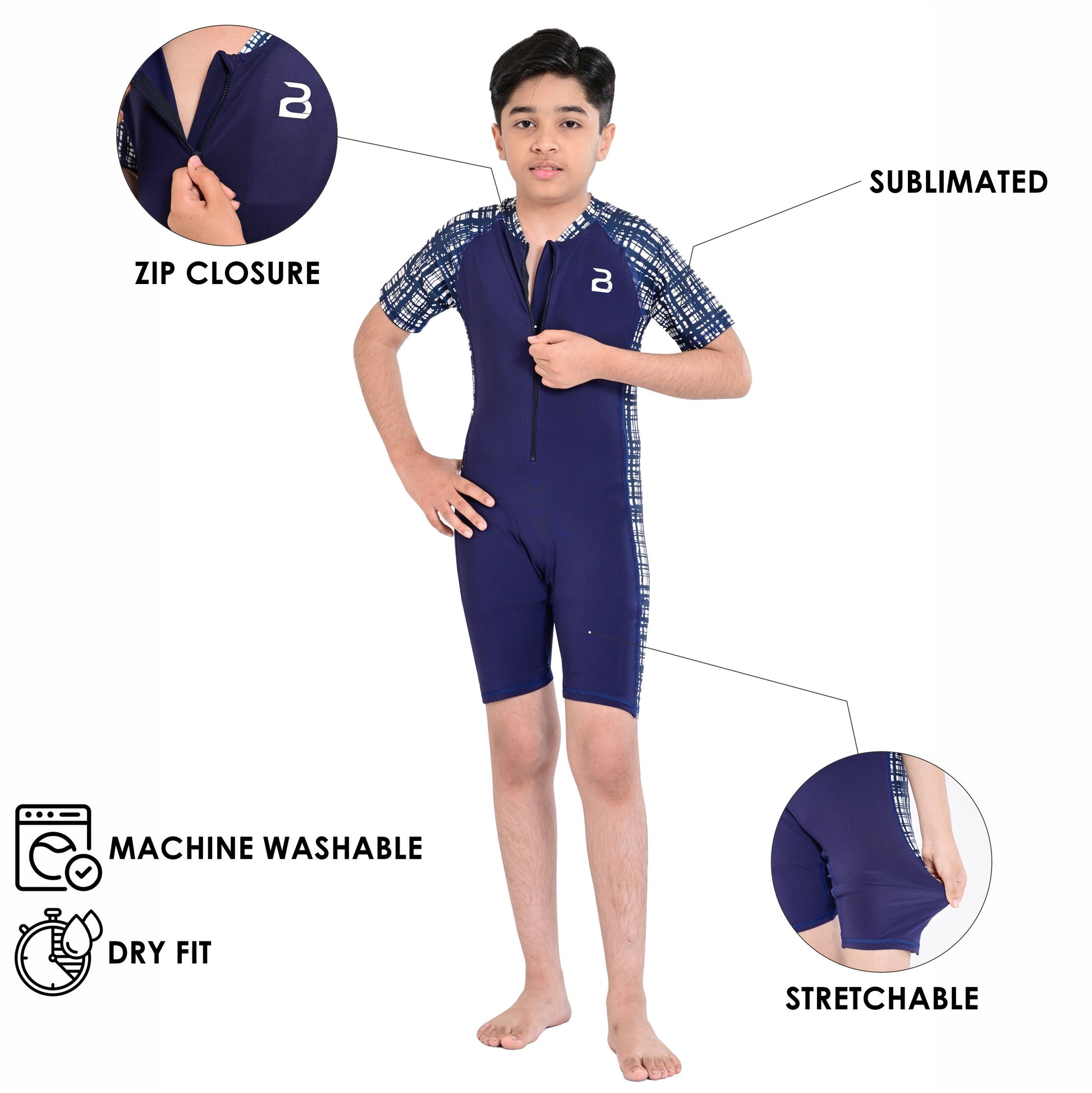 2Bold Blue Kids Swim Suit with Zipper – Quick-Dry UV Swim Shirt for Boys & Girls