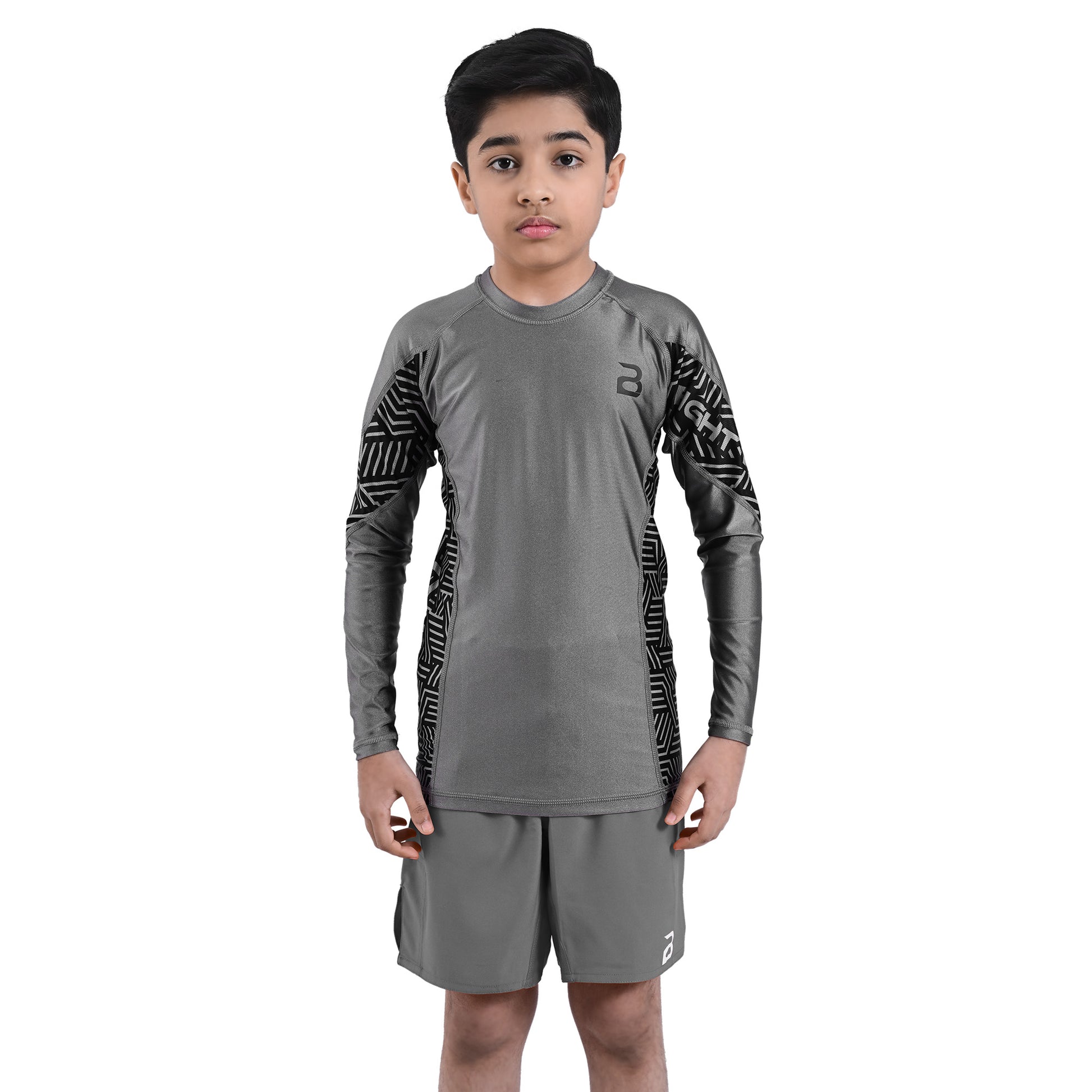 Kids BJJ Grey Rash Guard and MMA Shorts Set – Youth No-Gi Jiu Jitsu, Grappling, Training Gear