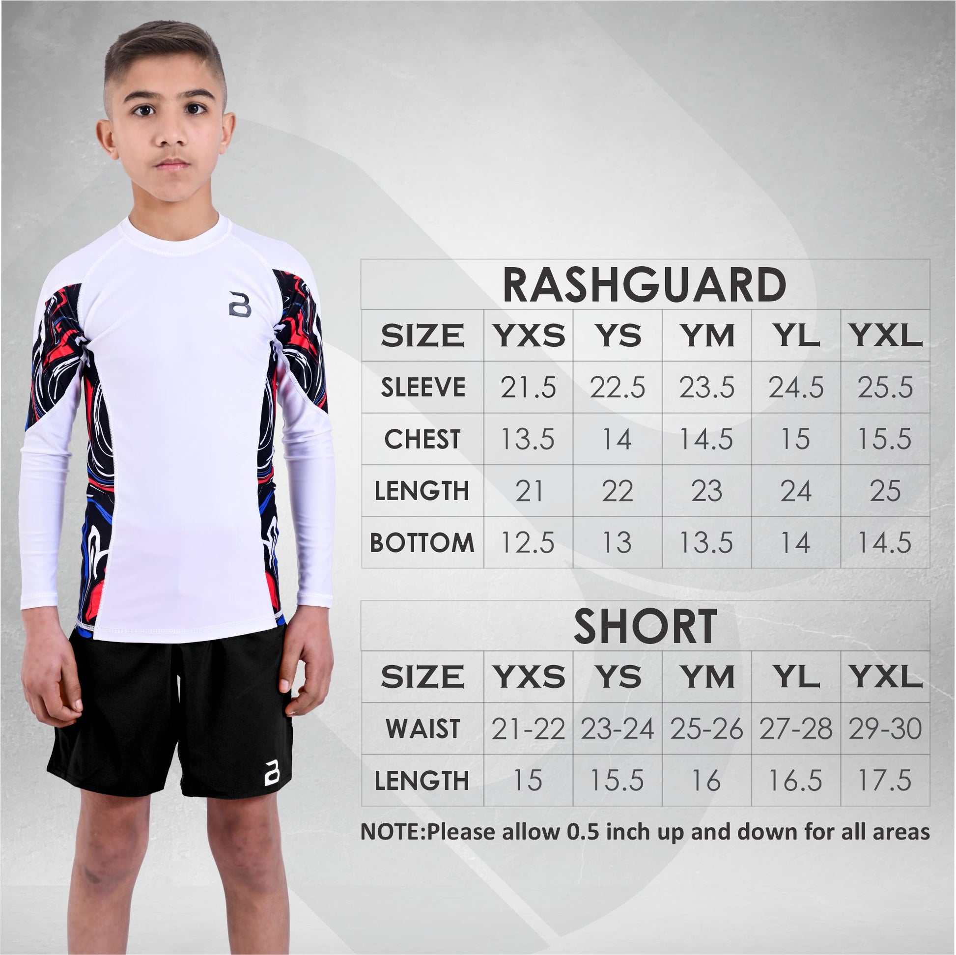 From top to bottom, this set offers unrestricted mobility, making it ideal for active kids training in Jiu Jitsu, No-Gi MMA, wrestling, boxing, Muay Thai, gym workouts, swimming, or even casual wear.