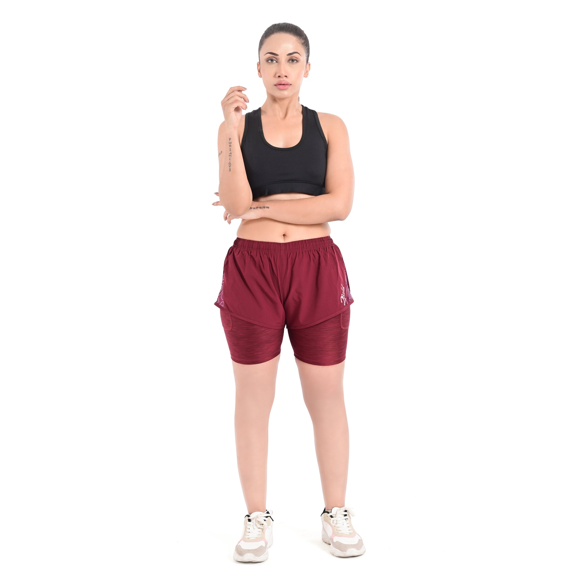 2Bold Burgundy Women’s 2-in-1 Running & MMA Training Shorts – Compression Liner With Phone Pockets