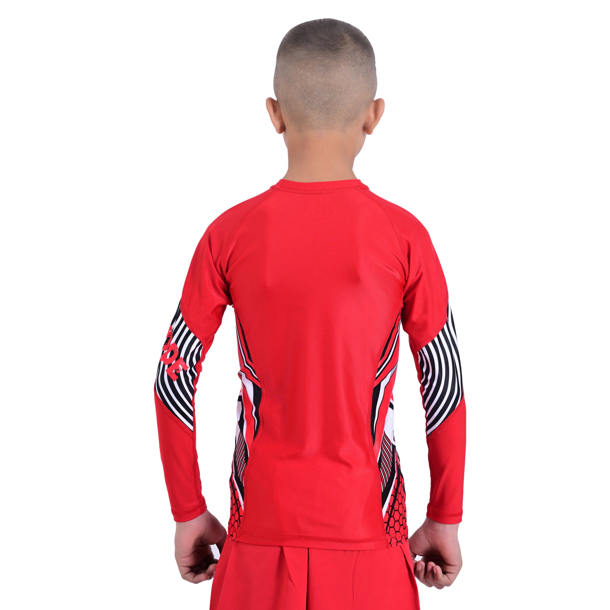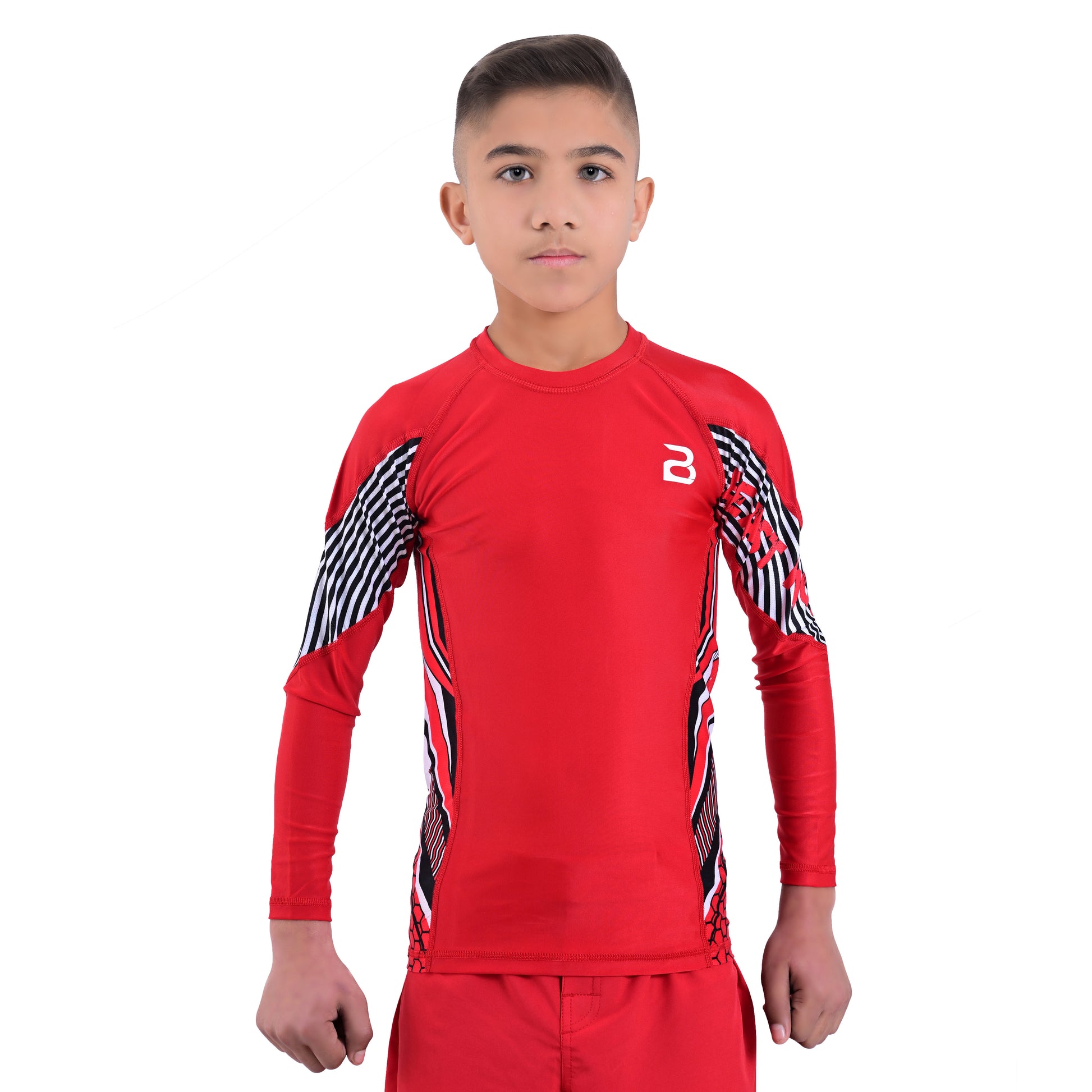 2Bold Red Kids BJJ Rash Guard - Youth No-Gi MMA Grappling Compression Shirt