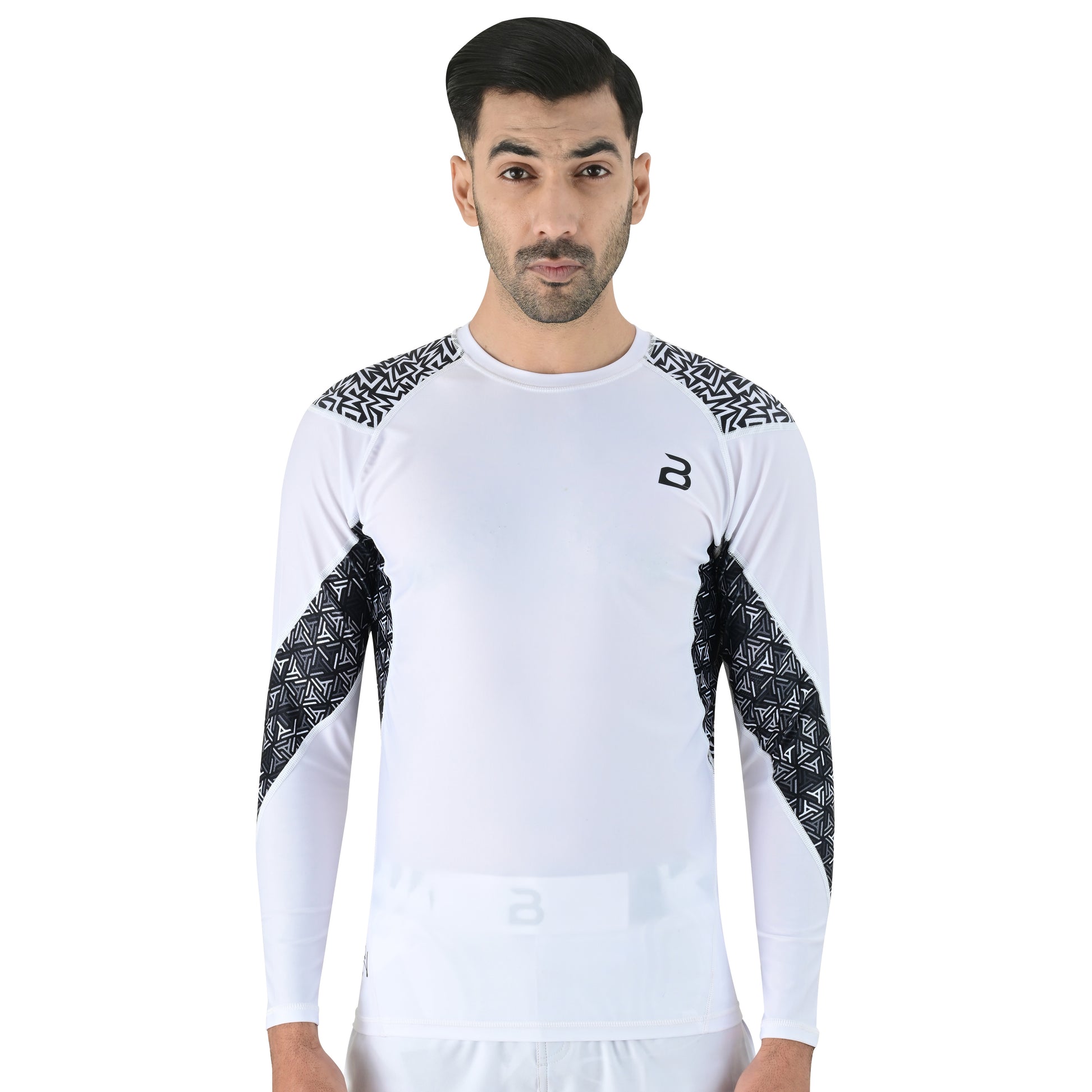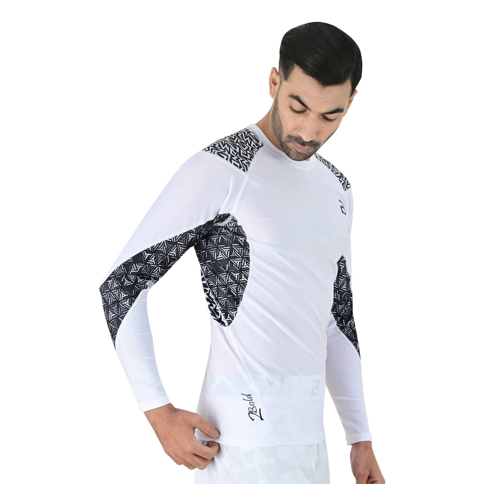 2BOLD White Jiu Jitsu Long Sleeve Spandex Rash Guard Men