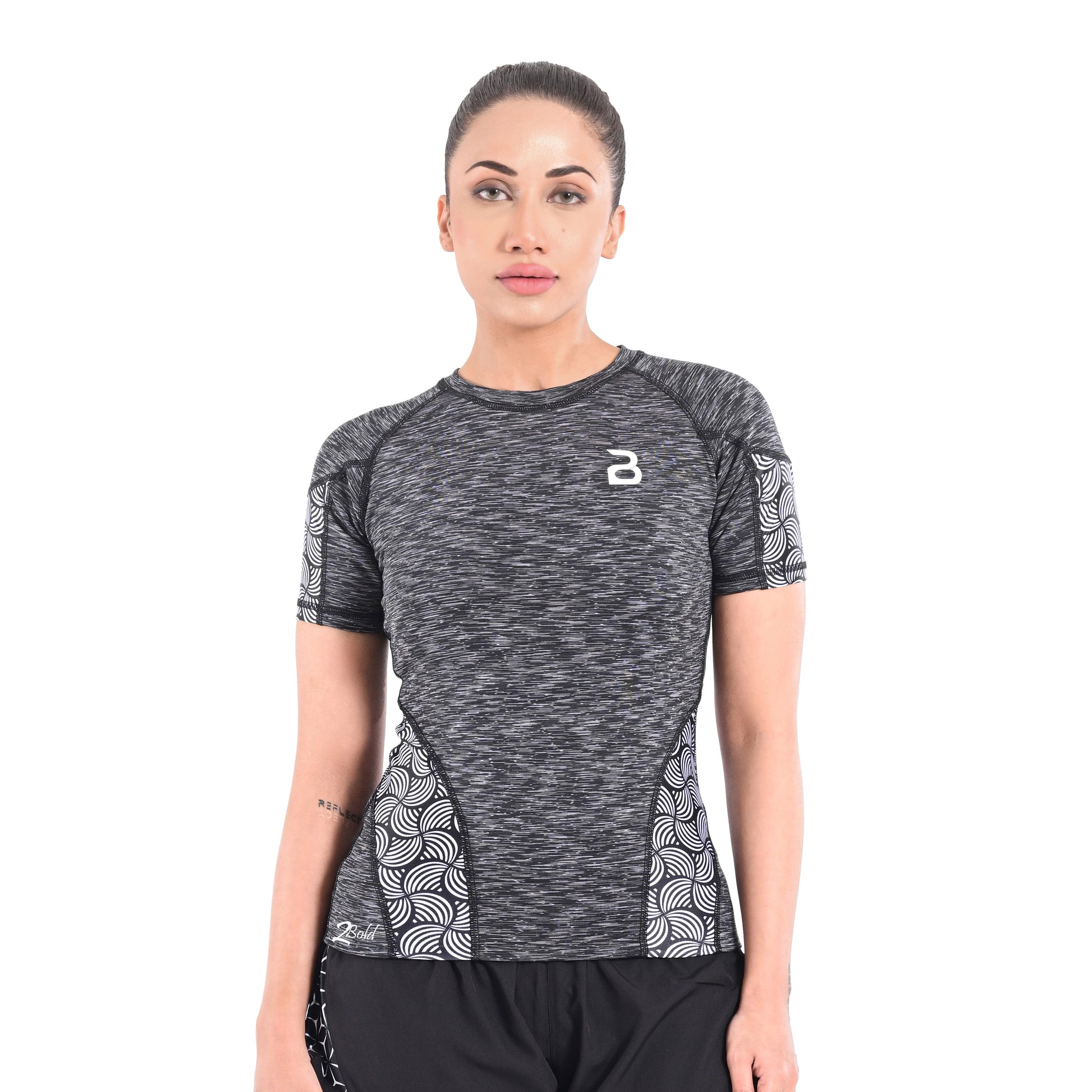 2Bold Grey Black Women’s Rash Guard –Long Sleeve Compression Shirt for MMA, BJJ, Yoga, Surf, Running & Gym Training Women Half sleeve Rash guard