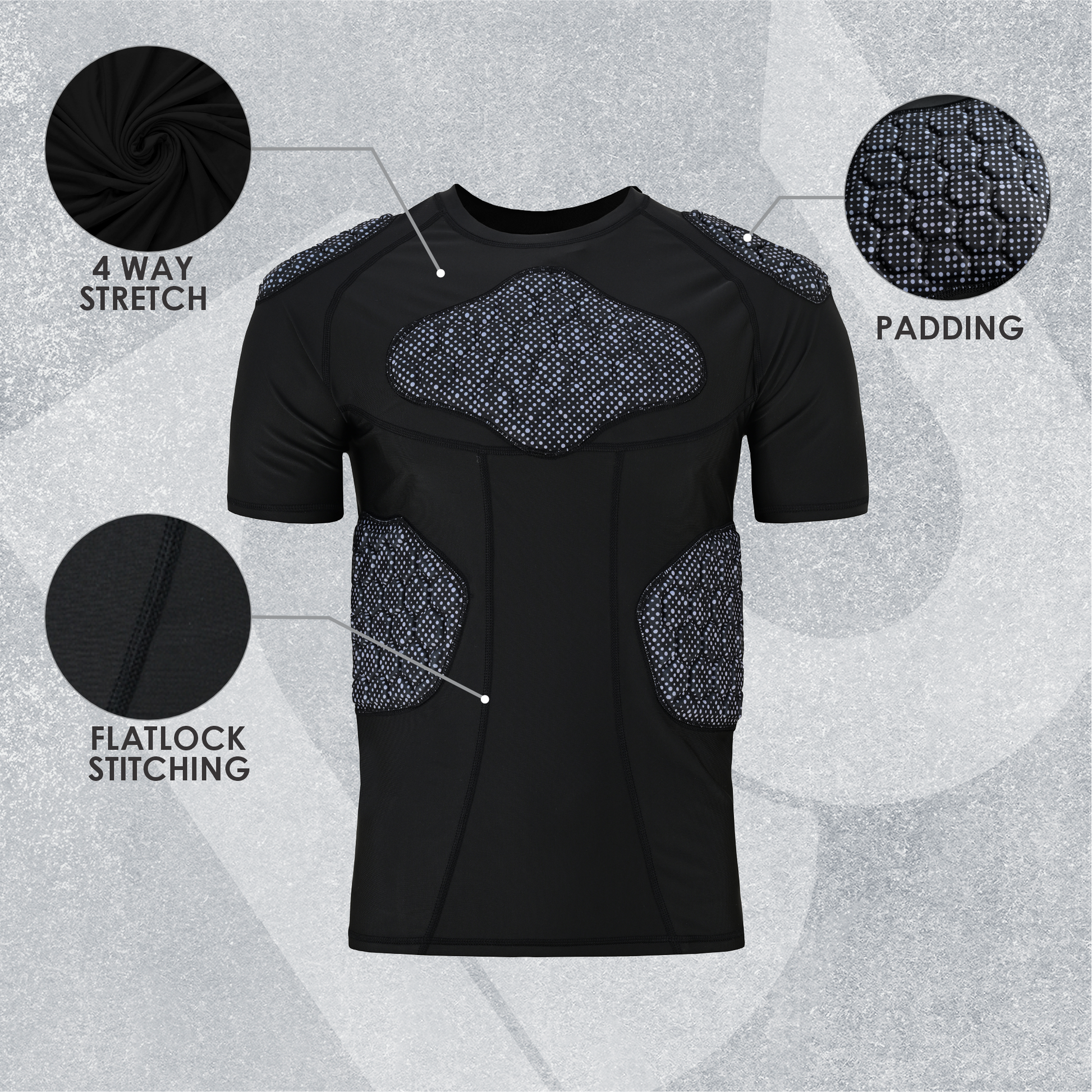 Stay protected and confident on the field with our high-performance Padded Compression Shirt, designed for athletes in football, basketball, rugby, hockey, and other high-contact sports. Featuring advanced rib and chest protection, this shirt is built with impact-absorbing, high-density foam padding to reduce the risk of injury without compromising flexibility or comfort.