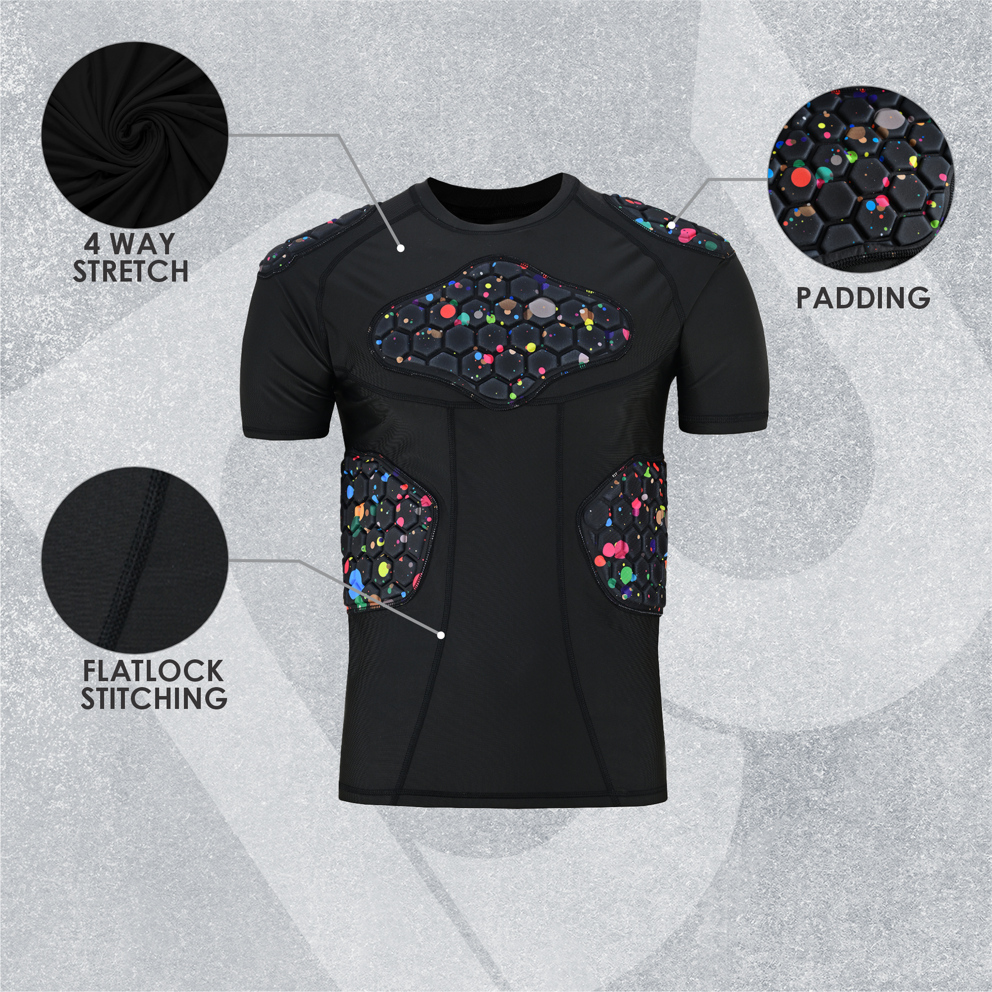 Stay protected and confident on the field with our high-performance Padded Compression Shirt, designed for athletes in football, basketball, rugby, hockey, and other high-contact sports. Featuring advanced rib and chest protection, this shirt is built with impact-absorbing, high-density foam padding to reduce the risk of injury without compromising flexibility or comfort.