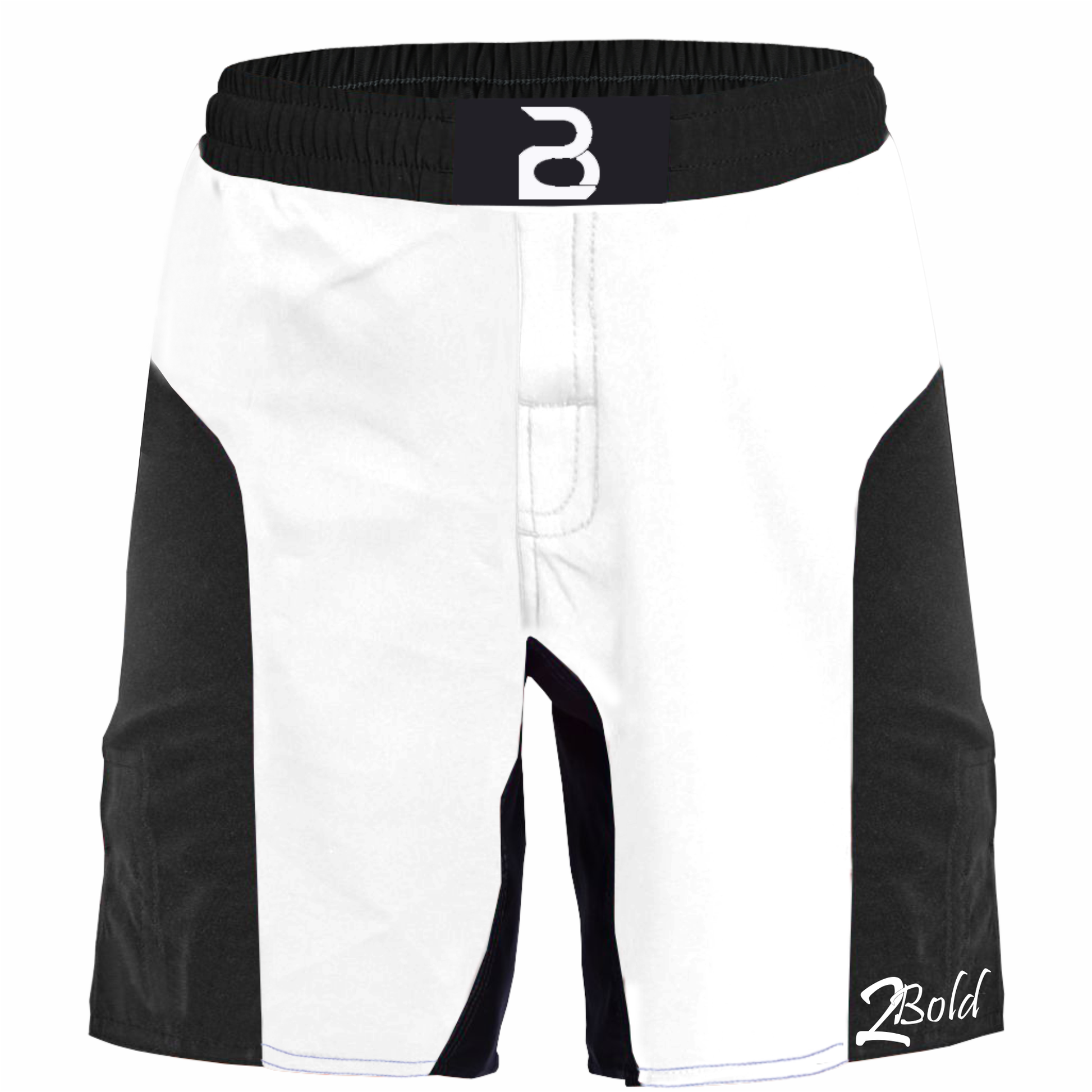Youth Mma White\Black Shorts – Kids BJJ No-Gi Fight Shorts for Training & Competition